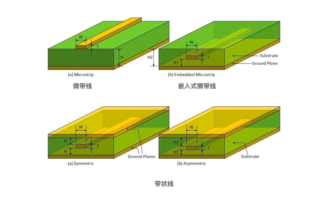 由于微带线和带状线他们的εr是不同的, 外层微带线的有效特性阻抗大约是2.92,而内层的对称带状线的特性阻抗大约是4(随材料和频率变化),所以电磁波的传播速度也不相同,电磁波在外层的微带线传输比内层的带状线要快。