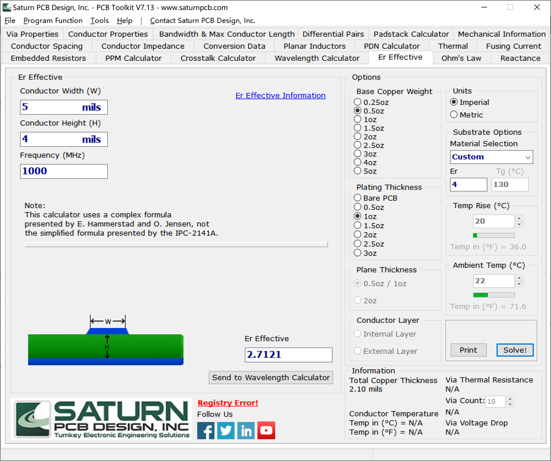 如果需要精确的外层微带线有效介电常数值,需要借助场求解器来计算。