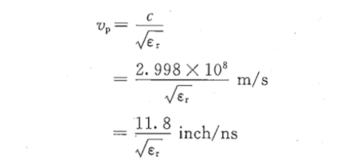 由于电磁波的传播受到与传输线内和周围材料的相互作用的影响,在低损耗电介质中电磁波的速度由下式给出: